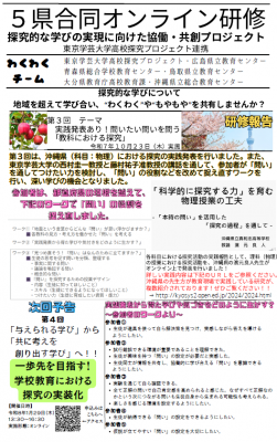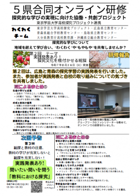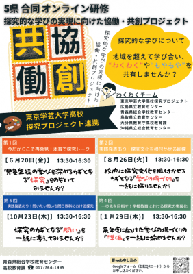 当センターでは、東京学芸大学高校探究プロジェクトと連携し、広島県、青森県、鳥取県、大分県、沖縄県の指導主事と共に、探究的な学びに関するオンライン研修会を企画しています。