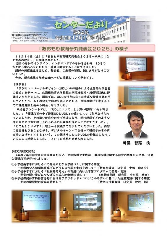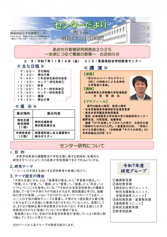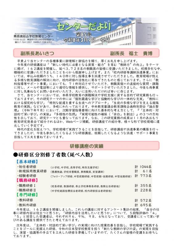 当センターでは、研修講座の内容などセンター事業を広く伝えるために、センター広報誌「センターだより」を発行しています。御覧いただければ幸いです。