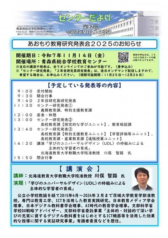 当センターでは、研修講座の内容などセンター事業を広く伝えるために、センター広報誌「センターだより」を発行しています。御覧いただければ幸いです。